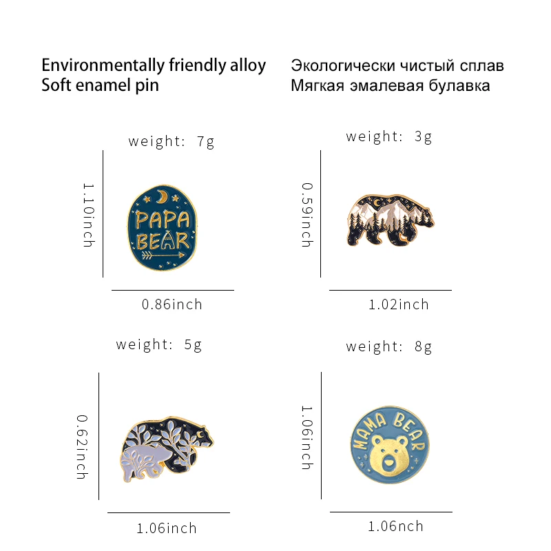 Эмалированные булавки с изображением лесного сада, мама, медведь, п...