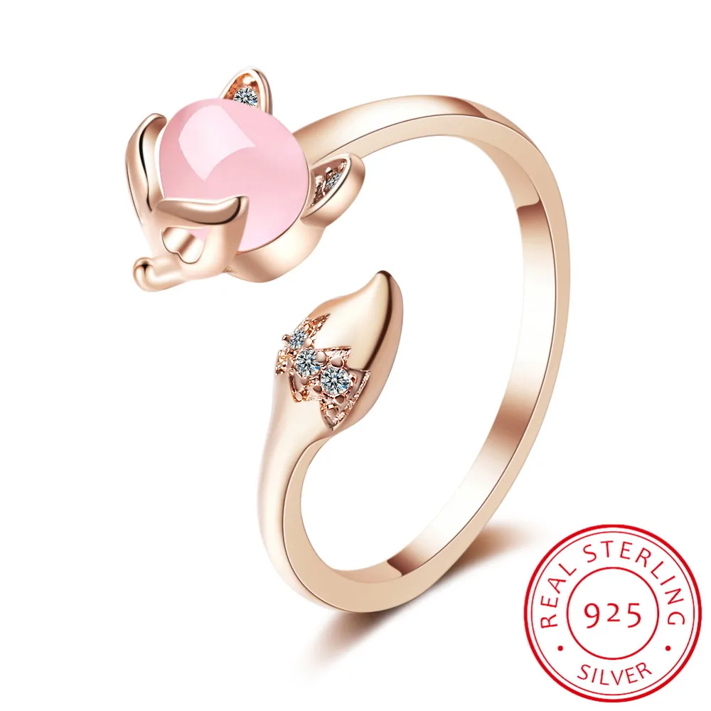 Серебристый цвет, опал, кольцо из розового золота, кольцо с лисой д...