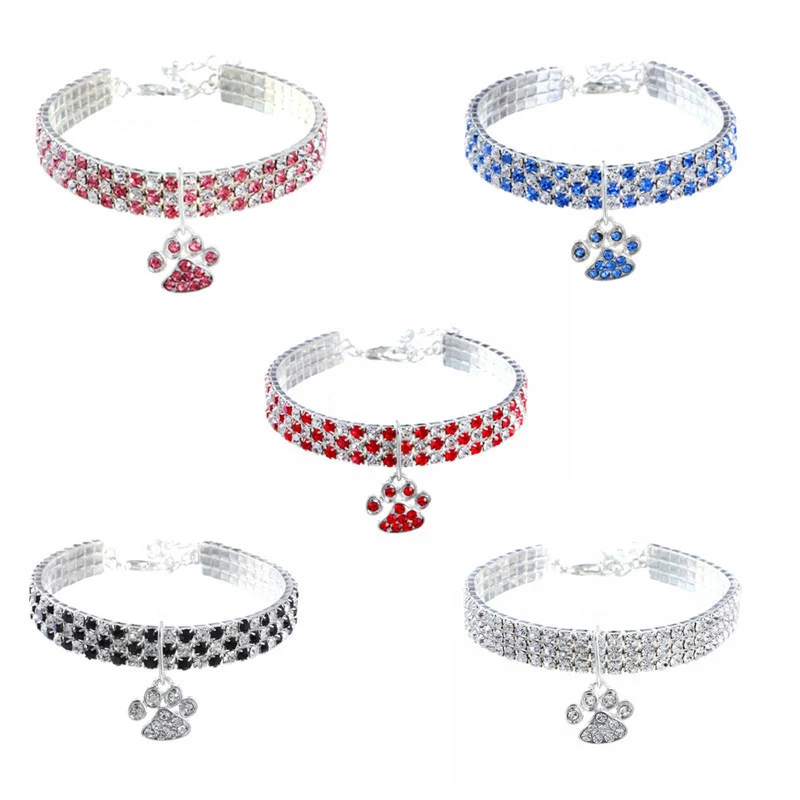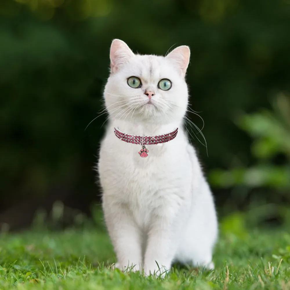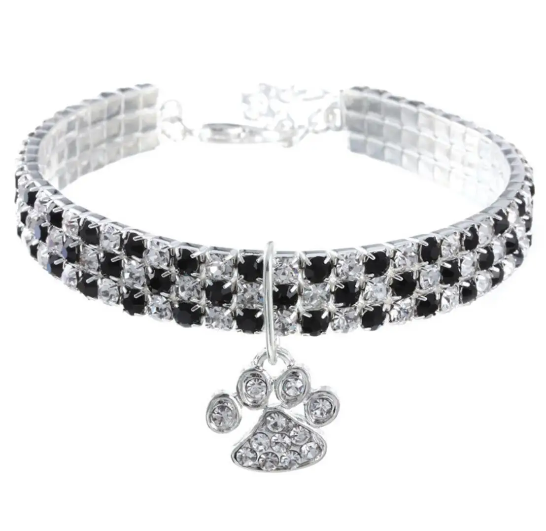 3 ряда украшения Стразы Ошейники для собак лапа подвеска Регулируемый Кристалл ошейник для котенка ожерелье для маленьких кошек собак