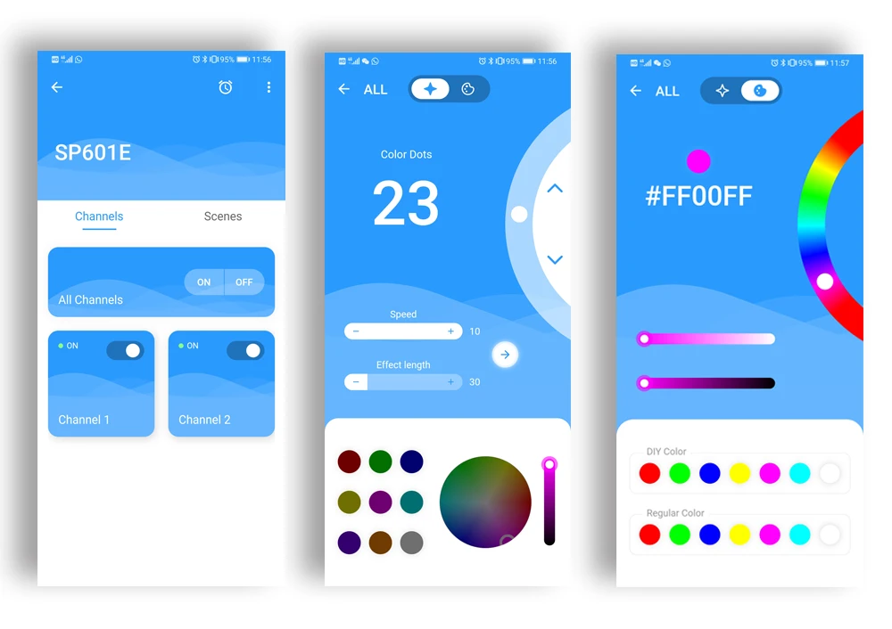 4. На странице эффектов есть различные музыкальные эффекты и немузыкальные эффекты, вы можете установить его скорость, цвет, направление и длину эффекта для определенного эффекта