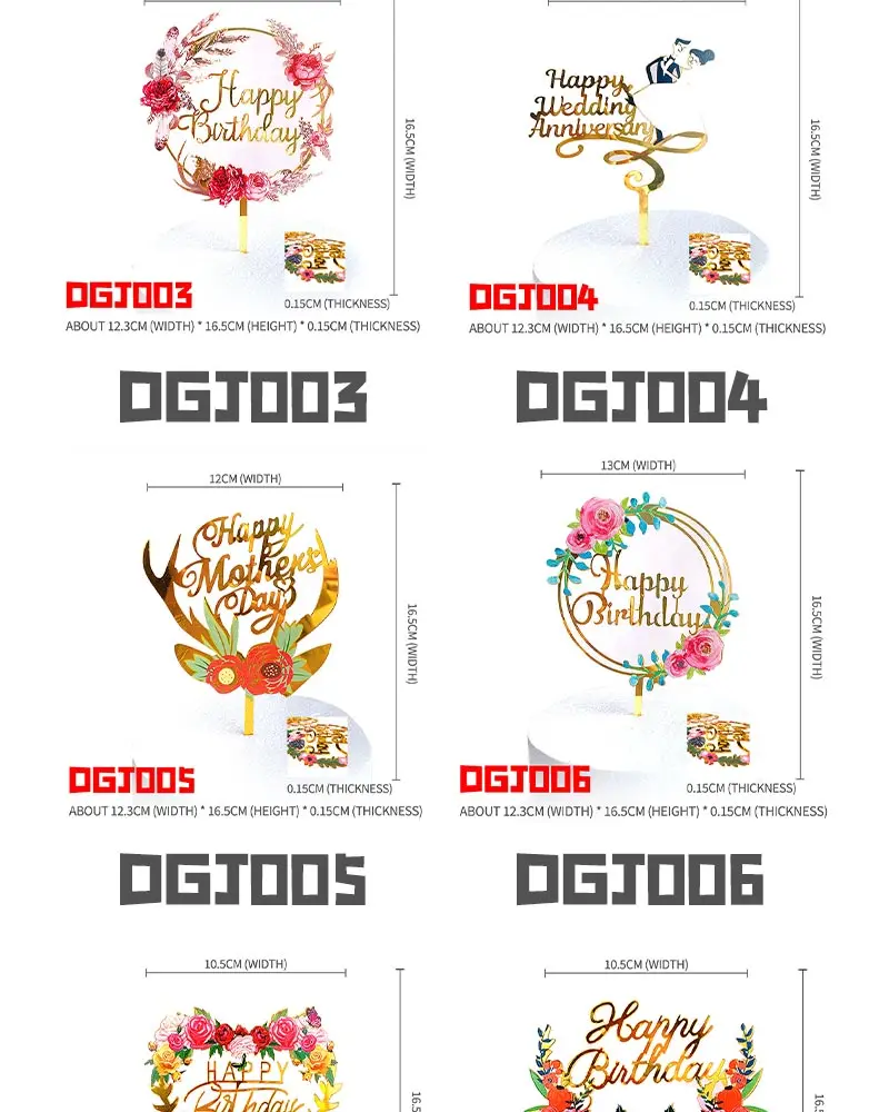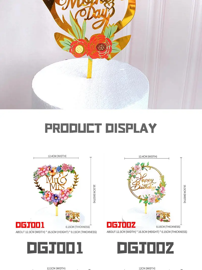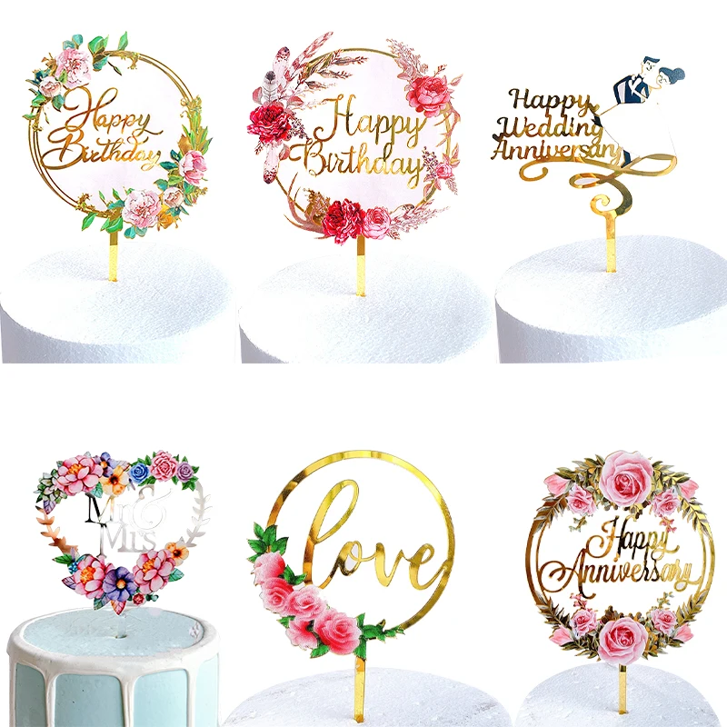 1 шт. цветок Топпер для торта С Днем Рождения акрил Золотой торт то...