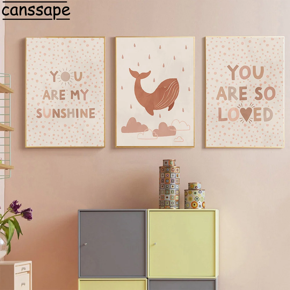 Мультяшный КИТ настенный художественный холст плакат Бохо печать You Are My картина с солнечным сиянием You Are So Love настенные картины для детской комнаты домашний декор