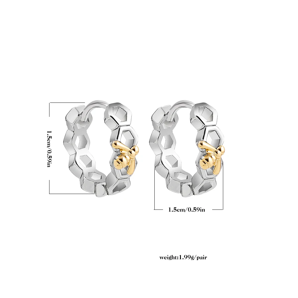 Серьги-гвоздики женские, золотистыесеребристые, в форме пчелы, обручи