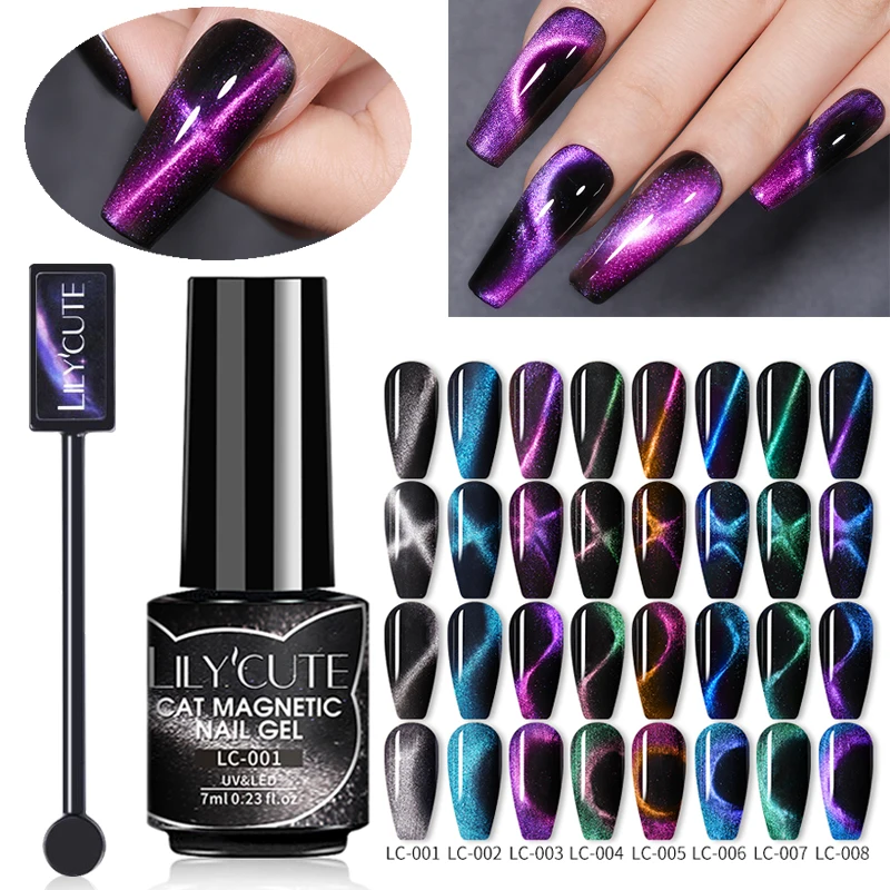 Магнитный лак для ногтей LILYCUTE 9D Cat с магнитным набором, УФ-гель для ногтей, удаляемый замачиванием, Гель-лак, Лаки, Блестящий лак для кошек