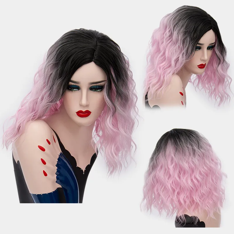 GAKA короткий кудрявый двухцветный Синтетический Косплей парик для женщин Боб омбре с темными корнями женские Искусственные волосы