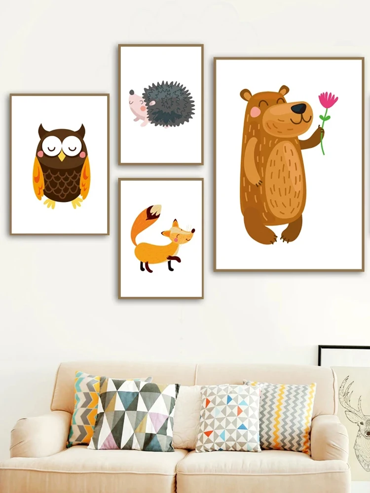 Картина для ванной в скандинавском стиле, с изображением животных, ...