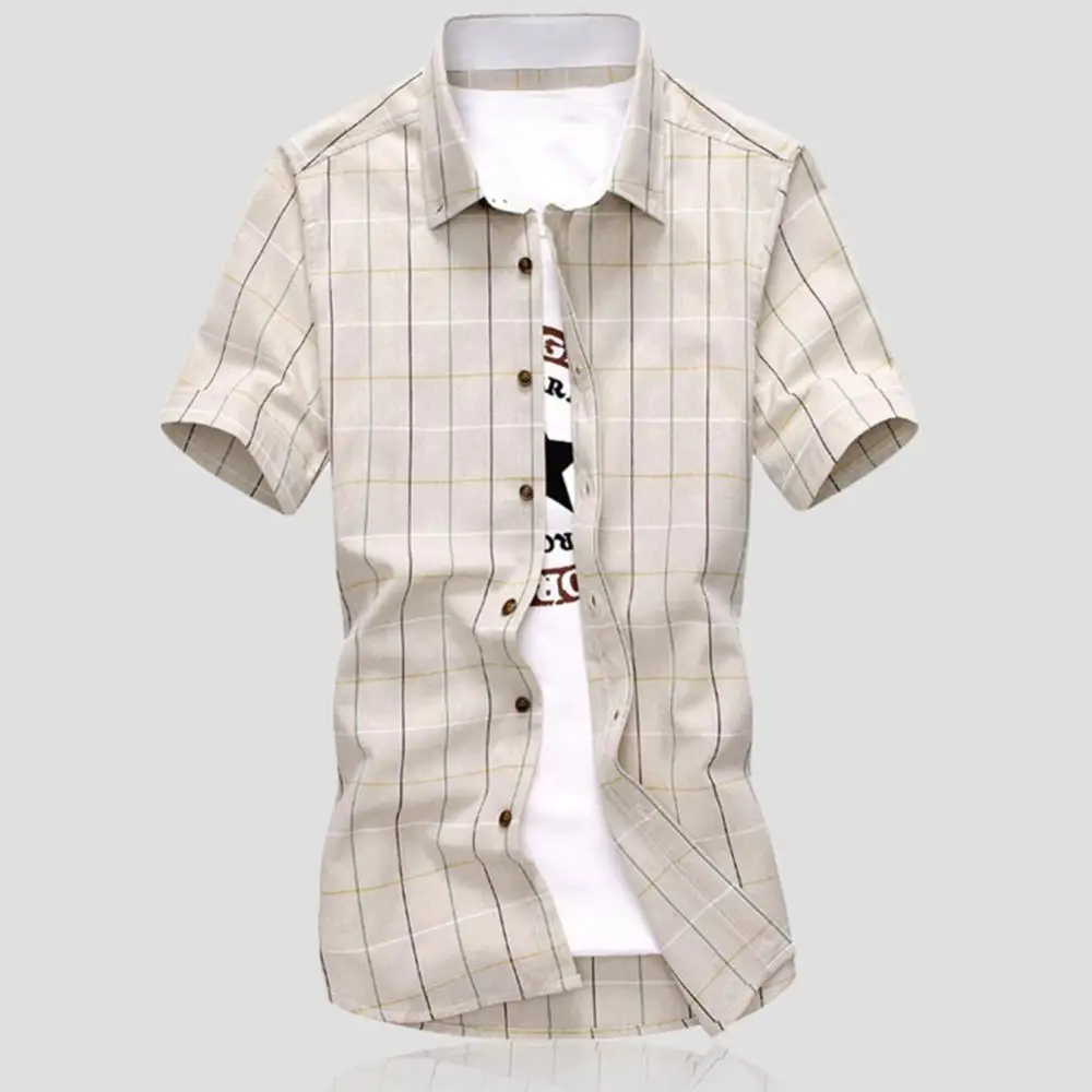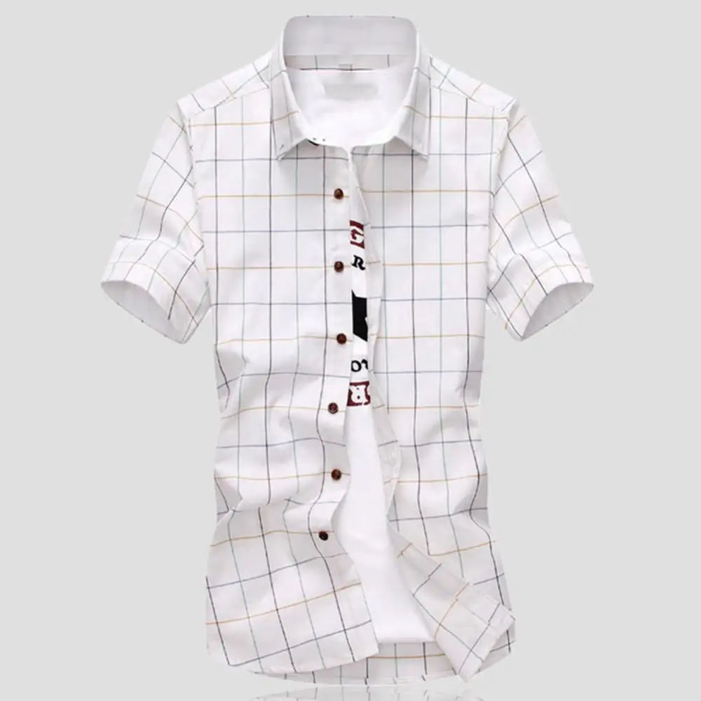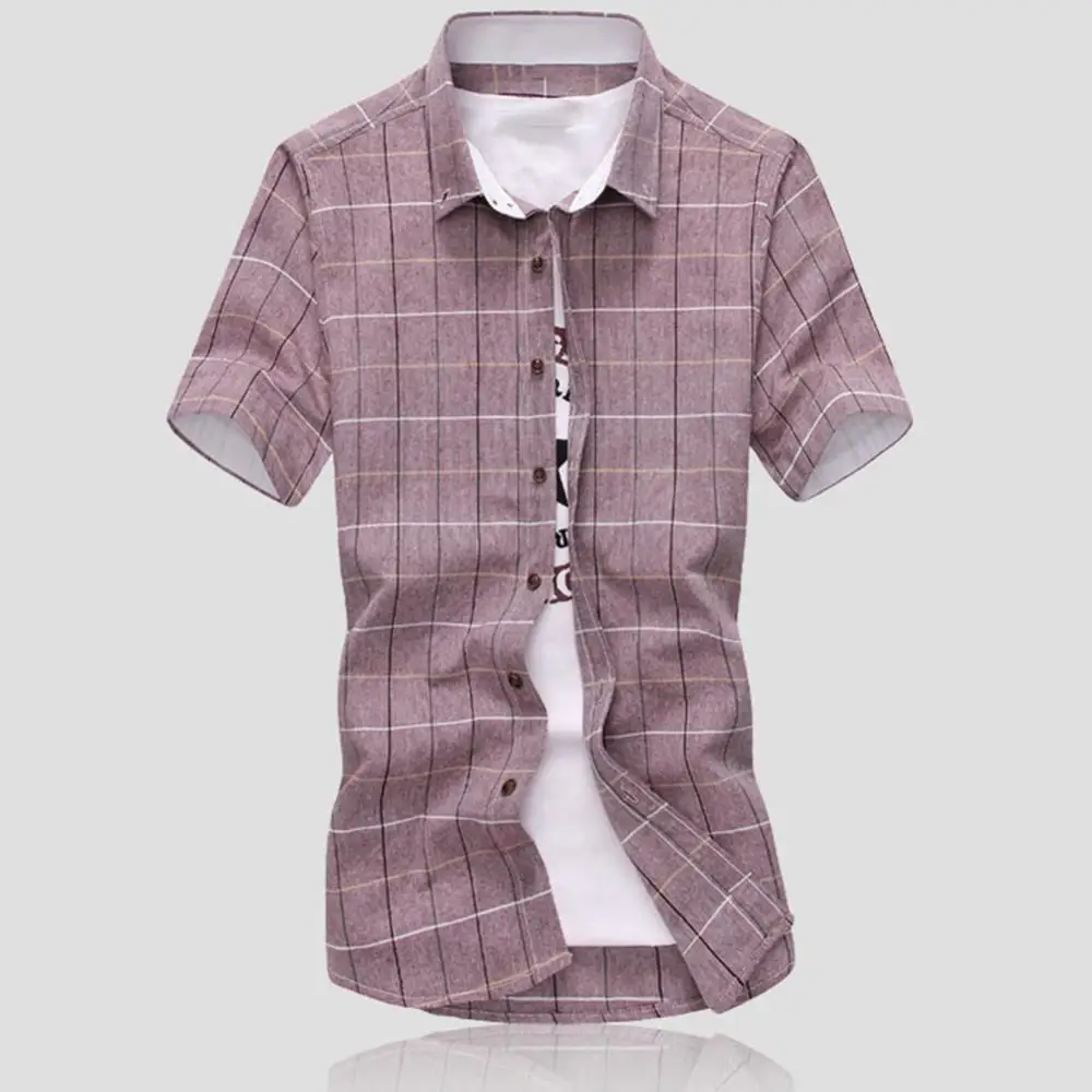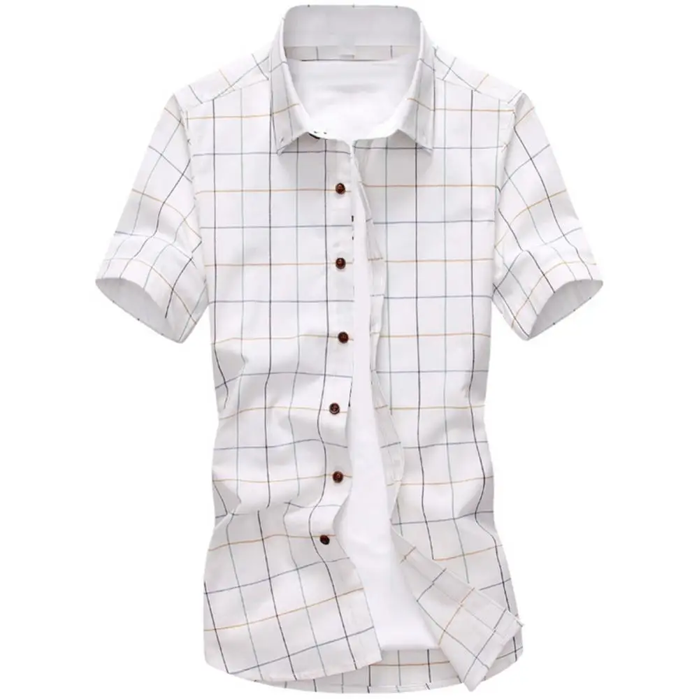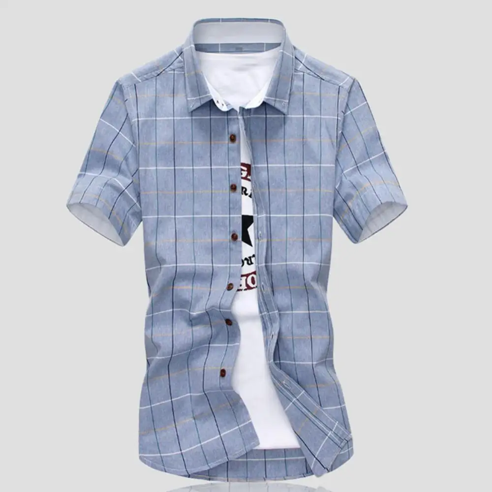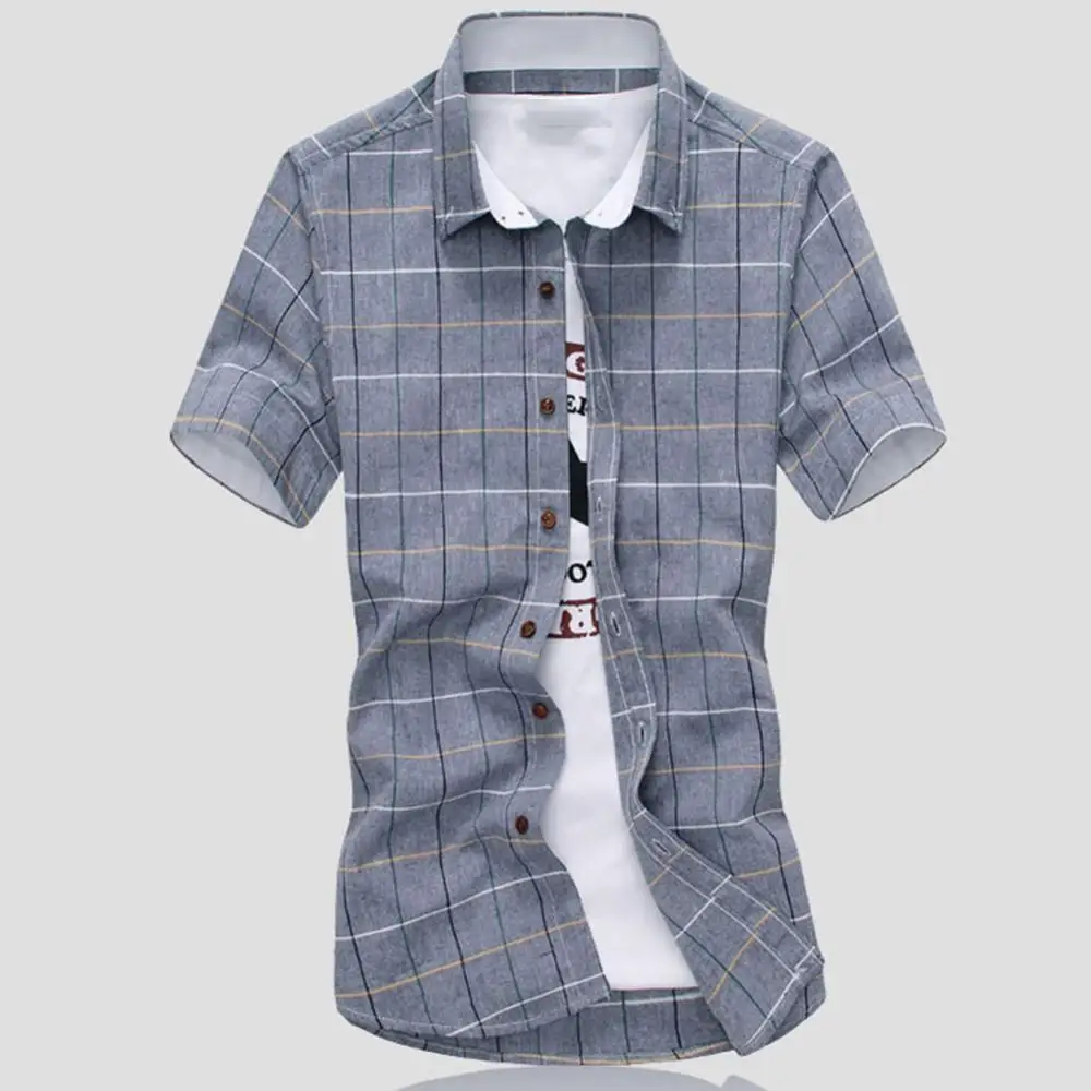 Рубашка мужская с отложным воротником, модная клетчатая хлопковая Повседневная Офисная Рабочая одежда с короткими рукавами, лето 2021