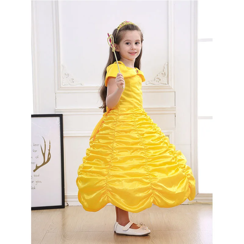 Платье принцессы Белль для косплея на Хэллоуин платья для девочек для красавицы и чудовища детская одежда для вечерние волшебная палочка Корона