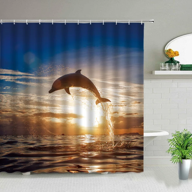 Забавная занавеска для душа в виде дельфина, s, синяя морская волна, декор для ванной комнаты, тканевая подвесная занавеска с крючками, милые животные