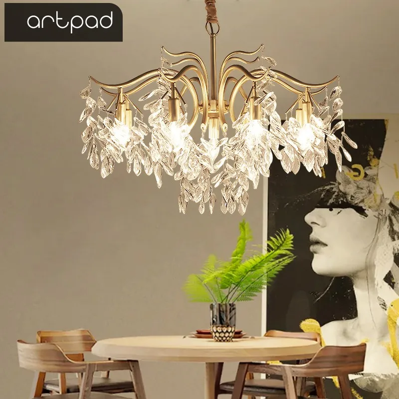 Светодиодные хрустальные люстры Artpad в скандинавском стиле, Золотая Роскошная лампа для кухни, столовой, гостиной, спальни, подвесной светильник