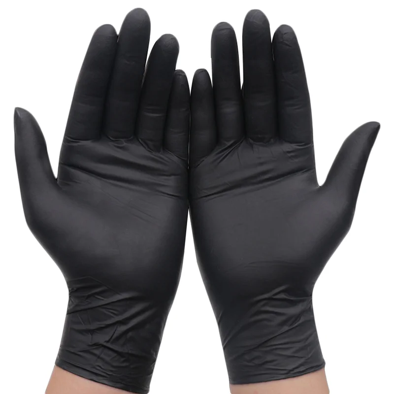 100 шт одноразовые нитриловые перчатки без порошка синтетический латексный каучук для очистки кухонной работы Садоводство механик черные перчатки
