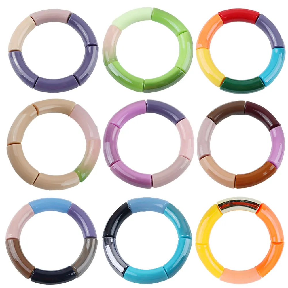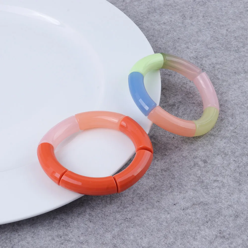 Новые Яркие Браслеты из акриловых бусин для женщин, эластичные брас...