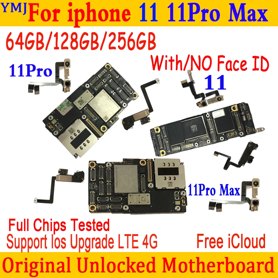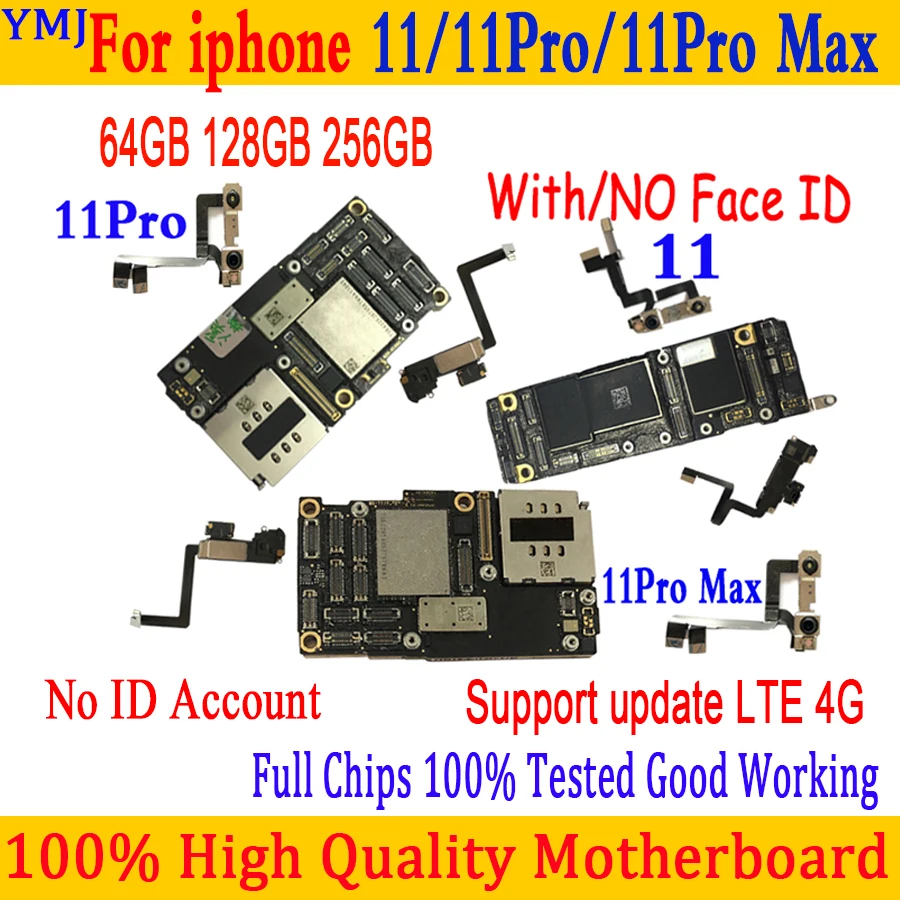 Материнская плата для iPhone 1111 Pro 11 Pro max, 64 ГБ128 ГБ256 ГБ, без и с распознаванием лица, логическая плата, без идентификационной учетной записи, полные чипы