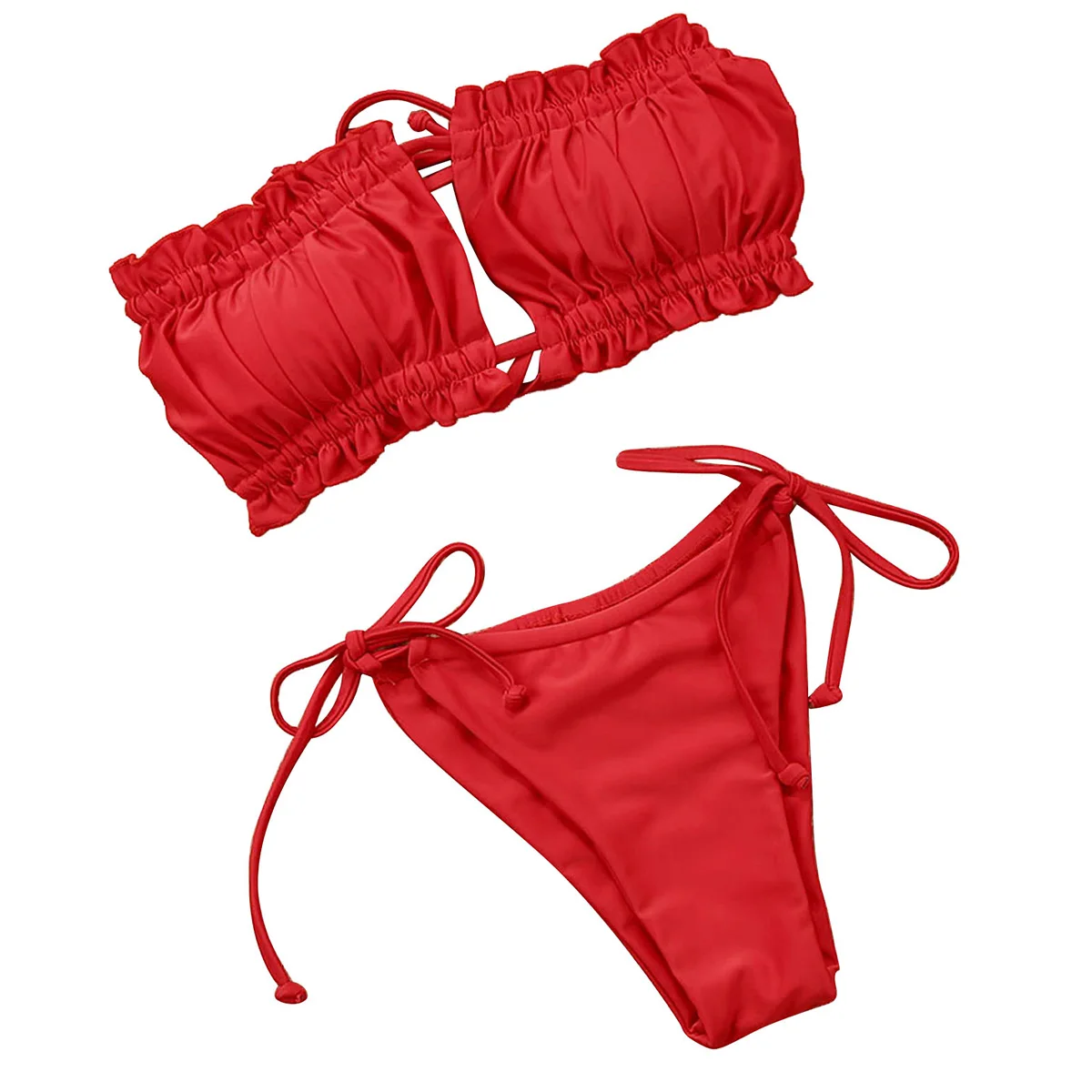 Женский купальный костюм из двух предметов, сексуальный бюстгальтер без бретелек + трусики в форме треугольника