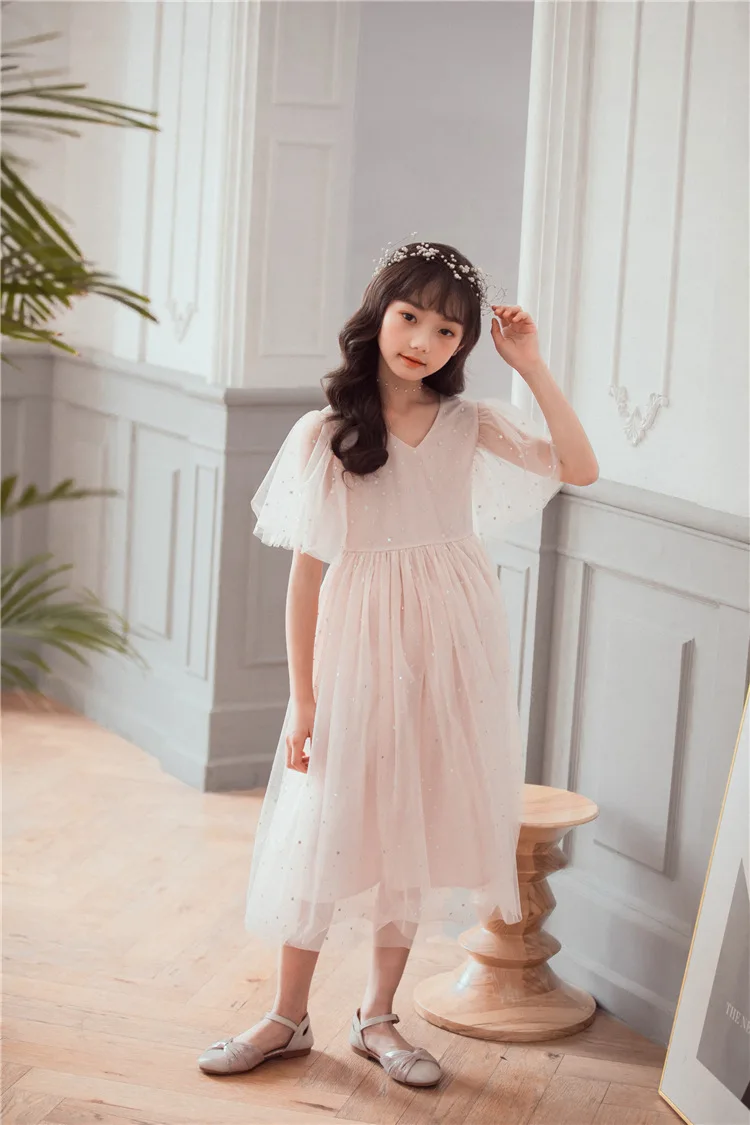 Вечерние платья для девочек-подростков 10-12 лет, бальное платье для вечеринки в честь Дня Рождения, платье принцессы с блестками, элегантный Детский костюм