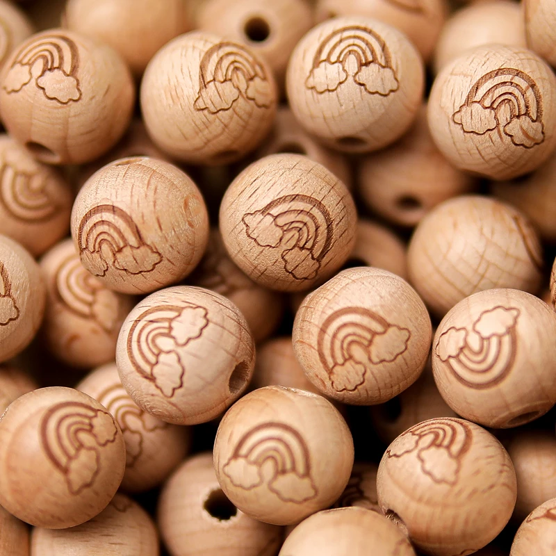 Bopoobo, 16 мм, 10 шт., бусинки из бука, круглые, прорезыватели, с принтом, деревянные бусины, сделай сам, браслет для новорожденных, для прорезывания зубов, ожерелье, аксессуар