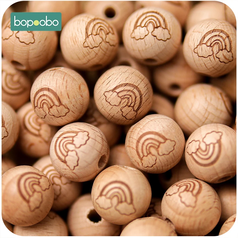 Bopoobo 16 мм 10 шт Буковые Круглые бусины для прорезывания зубов с принтом деревянные бусины DIY браслет для новорожденного ребенка прорезывание зубов Ожерелье Аксессуар