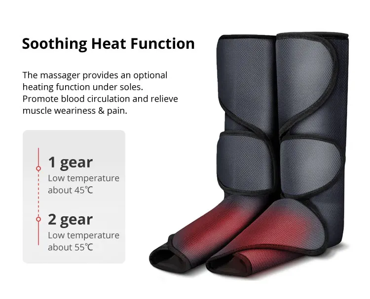☛Массаж стоп и икр-этот воздушный массажер для ног и стоп используется для массажа стоп и икр, подушки безопасности 2x3 внутри, сжимайте стопу и икроножную мышцу от пальца до икры, чтобы снять усталость и улучшить кровообращение.☛3 режима и 2 режима интенсивности-6 режимов массажа, 3 режима интенсивности и 2 температуры для обеспечения различных ощущений от массажа.☛Успокаивающая функция тепла для улучшения кровообращения и повышения профессионального массажа, массажер обеспечивает дополнительную функцию нагрева под подошвами. Высококачественный нагревательный хлопок согревает ваши ноги, способствует кровообращению и облегчает мышечную усталость и боль.☛3 интенсивности. Есть 3 интенсивности массажера для ног: слабый, средний и сильный. Если вы используете его в первый раз, вы можете начать с слабой настройки и строить оттуда. Затем Отрегулируйте интенсивность в соответствии с вашими ощущениями. Следуя этой инструкции, вы будете наслаждаться более комфортным массажем.☛6 режимов для облегчения мышечных массажеров Tespo для ног и ног могут обернуть все икры и ступни для большинства людей. 2*3 подушки безопасности и 6 режимов массажа позволяют сжимать большую часть стоп и икр, что помогает расслабить мышцы, улучшить кровообращение и снять RLS/отек/лимфедема.☛10-минутный массажер для ног автоматически отключается при использовании в течение 10 минут, что подходит для массажа. Эта функция особенно полезна во избежание чрезмерного использования, когда люди засыпают или забывают выключать во время массажа.