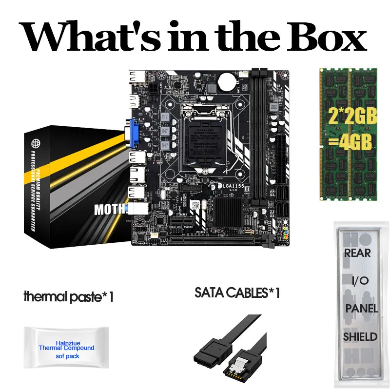 Комплект материнской платы LGA 1155 для Intel Core i7 i5 i3 pentium celeron LGA1155 M-ATX Intel с 2*2 Гб = 4 Гб DDR3 1333 МГц ОЗУ для ПК