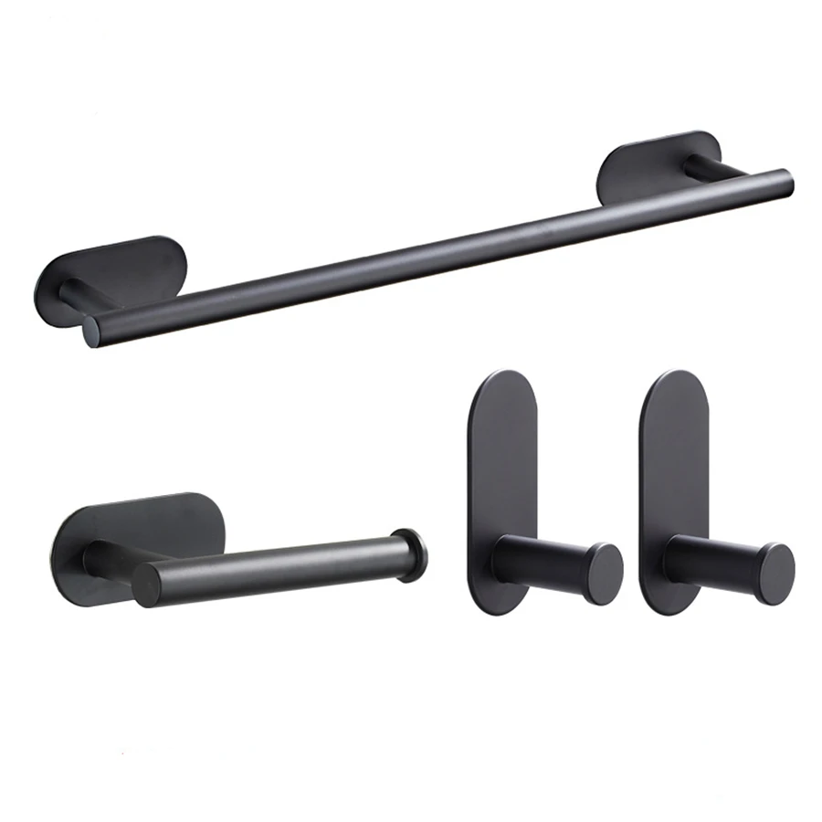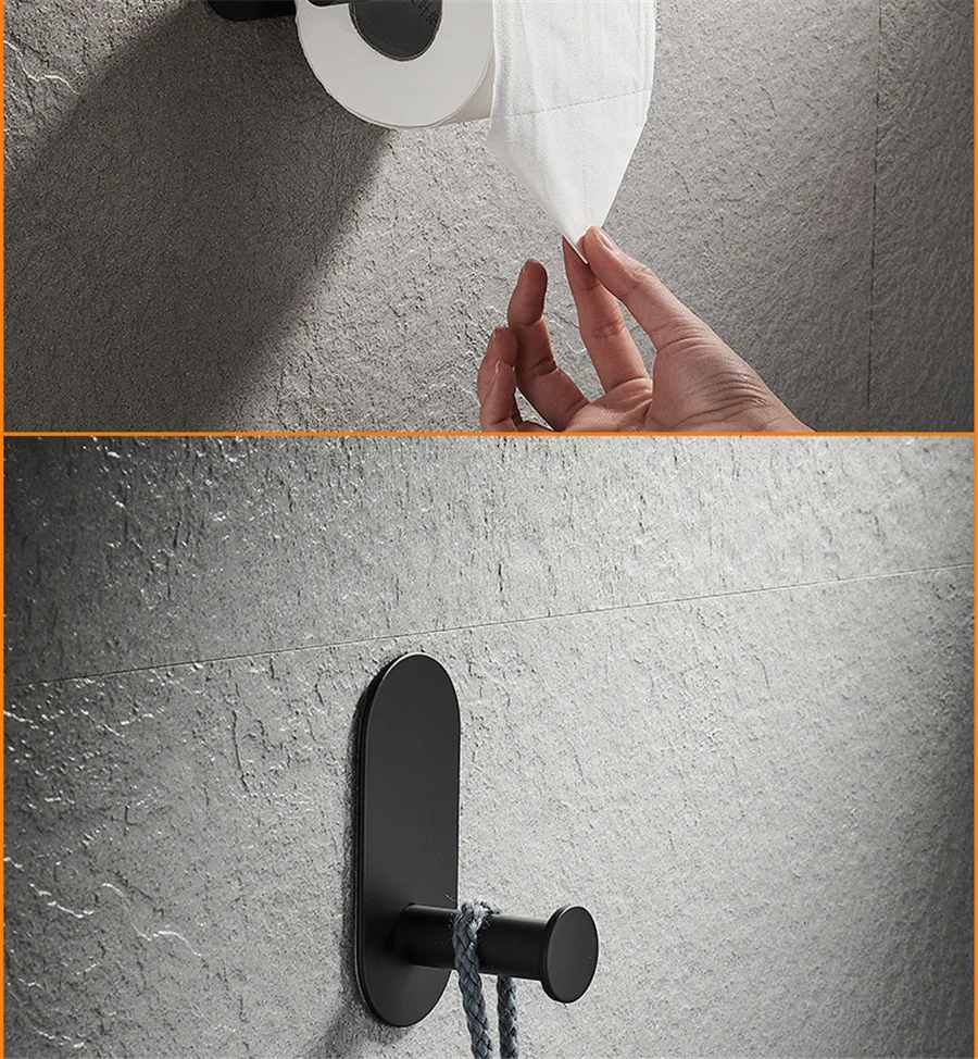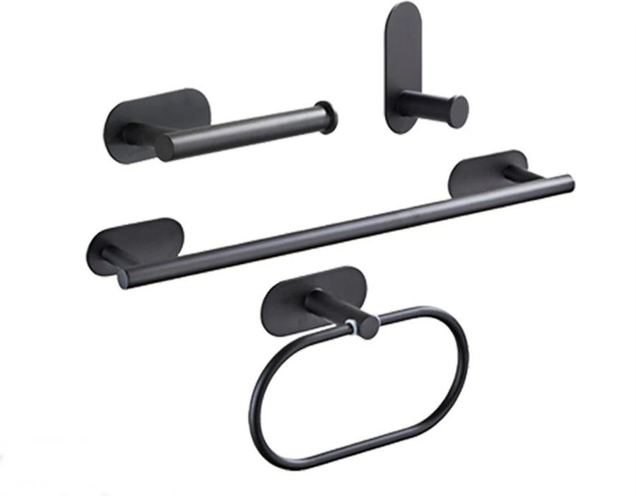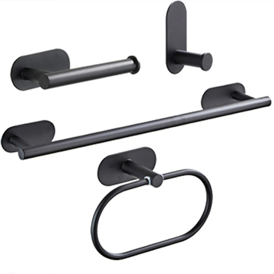 Черная фурнитура SUS 304, самоклеящаяся наклейка для ванной комнаты, кухни, держатель для полотенец, бумаги, кольцо для полотенца, крючок для одежды, аксессуары без сверления