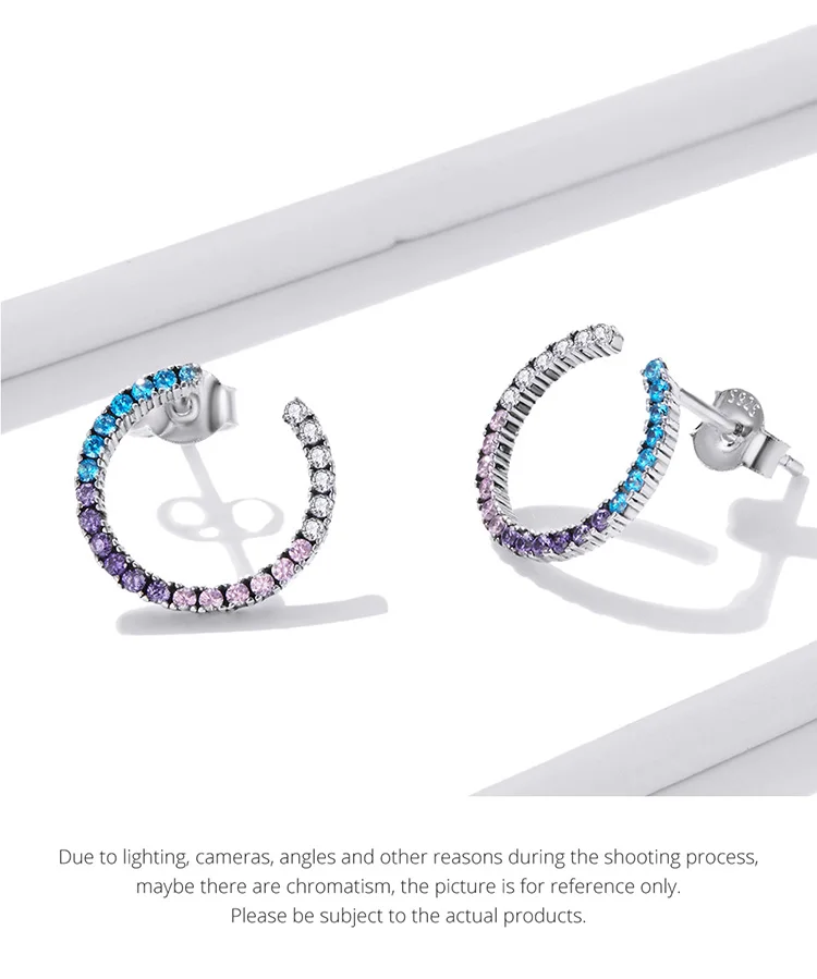Bamoer, Стерлинговое Серебро 925 пробы, радужные, синие, фиолетовые серьги-гвоздики со сном, круглые серьги с кристаллами, эффектные модные ювелирные изделия, подарки BSE506