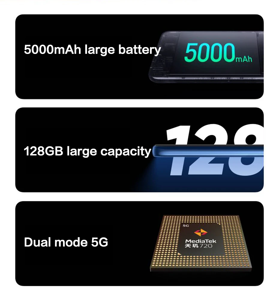 Realme V3 5G мобильный телефон Dimensity 720 Восьмиядерный 6 ГБ/8 ГБ ОЗУ 64 Гб/128 Гб ПЗУ 5000 мАч аккумулятор 18 Вт отпечаток пальца мобильные телефоныВнимание: Пожалуйста, обратите внимание, что цена в нашем магазине не включает Таможенный налог в вашей странеRealme V3 5G (Поддержка Google playstore и OTA Update)RAM + ROM6 ГБ + 64 Гб/6 ГБ + 128 ГБ/8 ГБ + 128 ГБПроцессорРазмеры 720Octa Core (7nm) до 2,0 ГГц; GPU:ARM G57 MC3Задняя камера 13 МП + 2 Мп + 2 МП Тройная камераФронтальная камера 8 Мп СелфиАккумулятор 5000 мАч (typ) ; Быстрое зарядное устройство 18 ВтДисплей 6,5 дюймов; Разрешение: 1600x720 HD +; Передача данных, элемент соединения автоматизированной системы управления производством, Грануляция, Горилла Стекло; Экран к корпусу ~ размерное соотношение: 88.7%ОС realme UI на базе Android 10,0Слот для карты Nano SIM * 2Характеристики Bluetooth 5,0, отпечатков пальцев, GPS, ГЛОНАСС, Galileo,Beidou,Face ID;Dolby Atmos,Hi-Res AudioСеть5G NR:NSA: N1/N41/N77/N78/N79;4G LTE FDD: B1/B3/B4/B5/B7/B8;TD-LTE:B34/B38/B39/B40/B41(2515-2675 МГц)3G WCDMA:B1/B2/B4/B5/B6/B8/B19 CDMA2000:BC02G GSM:850/900/1800/1900 CDMA:BC0