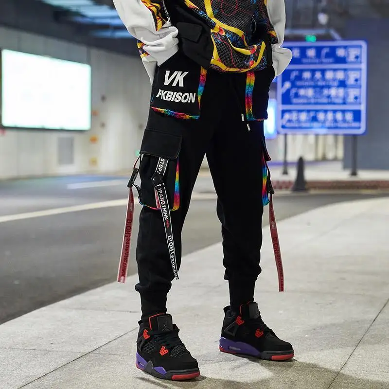 Брюки-карго мужские с лентами и надписью, Джоггеры в стиле хип-хоп,...