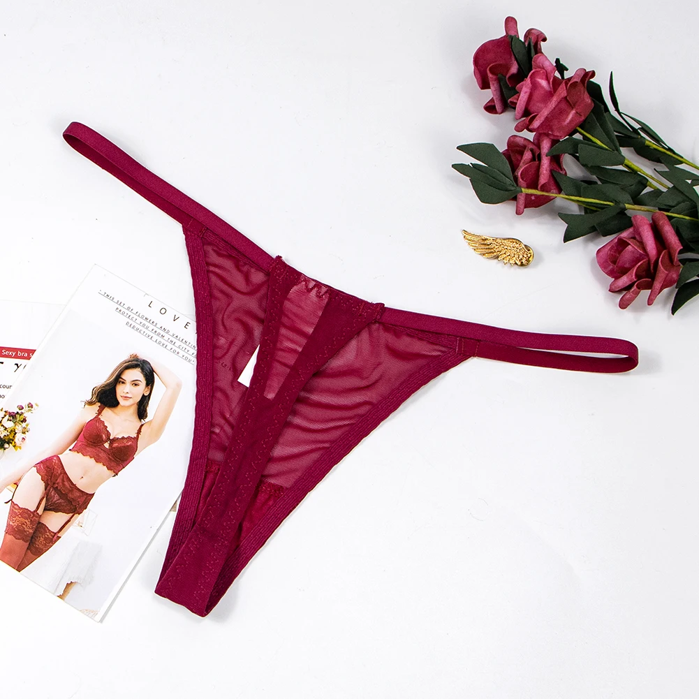 Сексуальные пляжные стринги, женские бикини с V-образным вырезом, сетчатые кружевные трусики CYHWR
