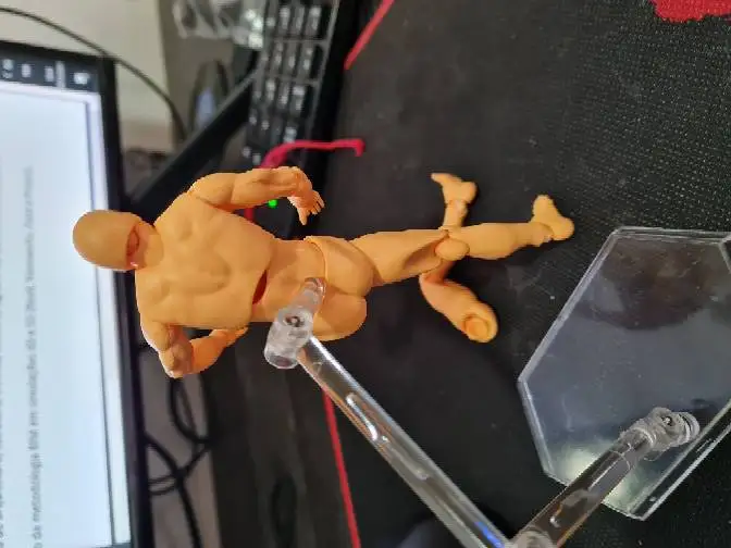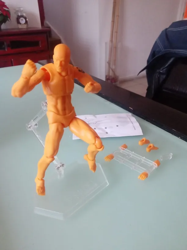 O boneco veio com uma cor laranja ao invés da bege que aparece nas fotos, mas eu tive mais de um problema com esse pedido, pois o corpo do boneco cinza não parece ser da mesma qualidade que o laranja, nessa versão que eu recebi as pernas dele simplesmente não fica preso, dificilmente consigo fazer as poses que eu gostaria. A parte de cima do corpo não encaixa direito no boneco, o que deixa ele sem pescoço, fica bem esquisito. Mesmo após conversar com a loja, eles recomendaram colar as pernas, o que eu acho meio ruim, pois eu queria algo que eu pudesse mudar as poses de ação de tempos em tempos e não uma estátua. Não voltaria a fazer negócio com a loja.