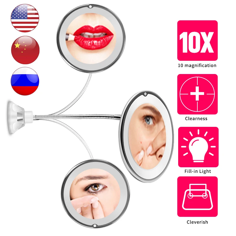 VIP Led косметическое зеркало с увеличением косметический светильник косметический макияж Grossissant 10X зеркала Droppship Sucker