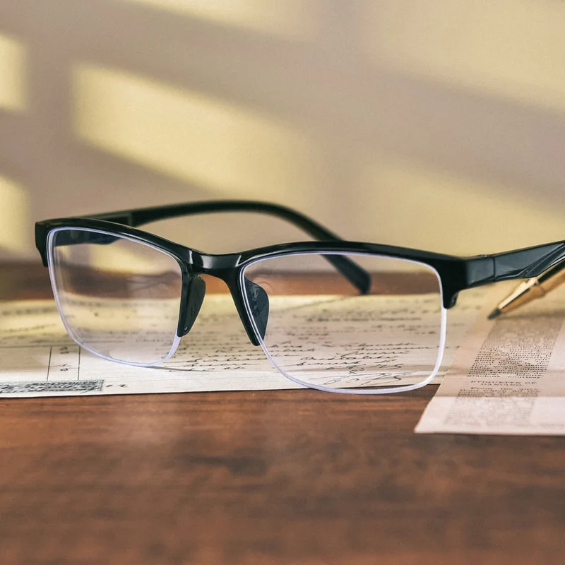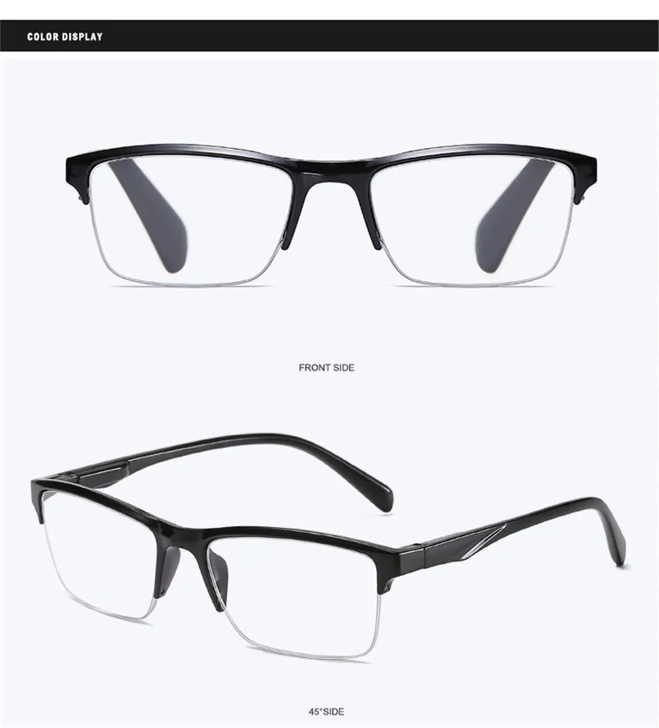 Очки для чтения с полуободковой оправой, пресбиопические очки для мужчин и женщин, ультралегкие, черные, с силой от + 75 до + 400