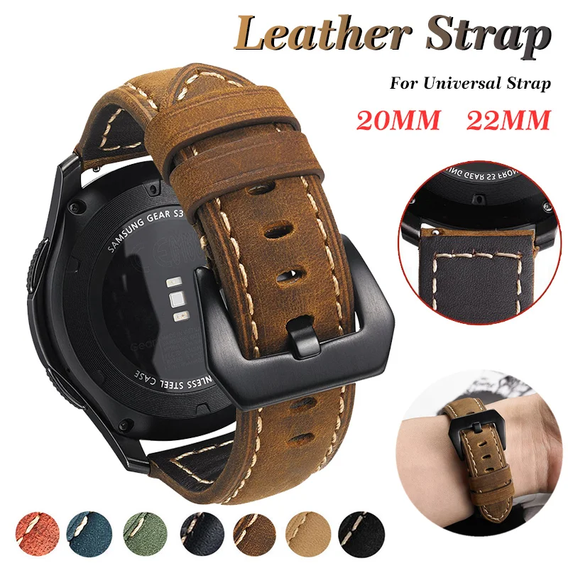 Ремешок кожаный для Samsung Galaxy Watch 3 41 мм 46 мм, браслет для Huawei Watch Band GT2 Pro Amazfit Bip, 20 мм 22 мм