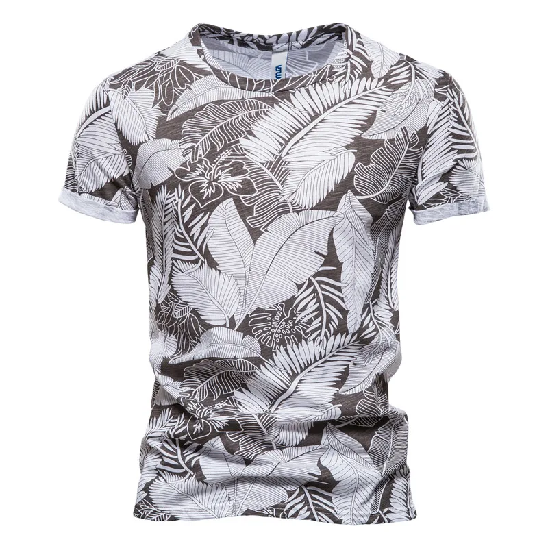 Футболка мужская с принтом листьев AIOPESON, из 2021 хлопка, с круг...