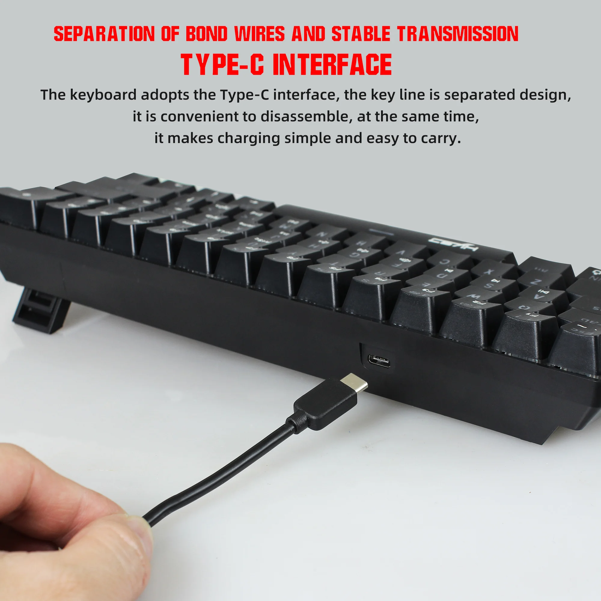 Механическая игровая клавиатура с цветной RGB подсветкой, 61 клавиша