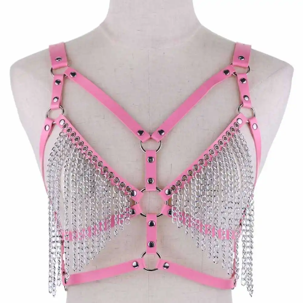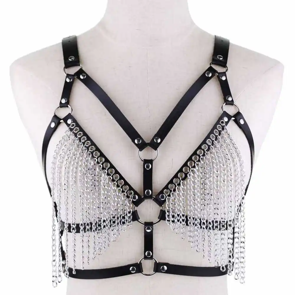 Женский кожаный бюстгальтер, с цепочкой, в готическом стиле