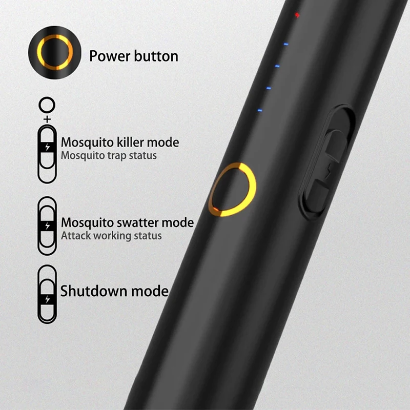 Интеллектуальный режим уничтожения комаров: стоячий, настенный. Когда он опускается для зарядки, он убивает комаров и выпускает Ультрафиолетовый физический светильник, чтобы побудить комаров убить. Встроенная 14 УФ-лампа LDE beads с длиной волны 395-400 мм может использоваться как убийца комаров.