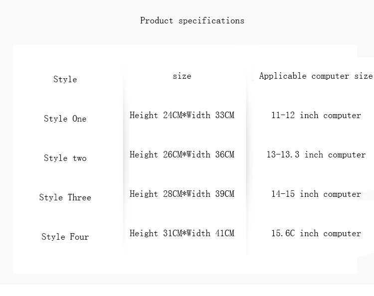 Размер подходит для компьютераВысота 24 см * ширина 33 см 11-12 дюймов компьютерВысота: 26 см * Ширина 36 см 13-13,3 inchcomputerВысота 28 см * ширина 39 см 14-15 дюймов компьютерВысота 31 см * ширина 41 см 15. 6C дюймовый компьютер
