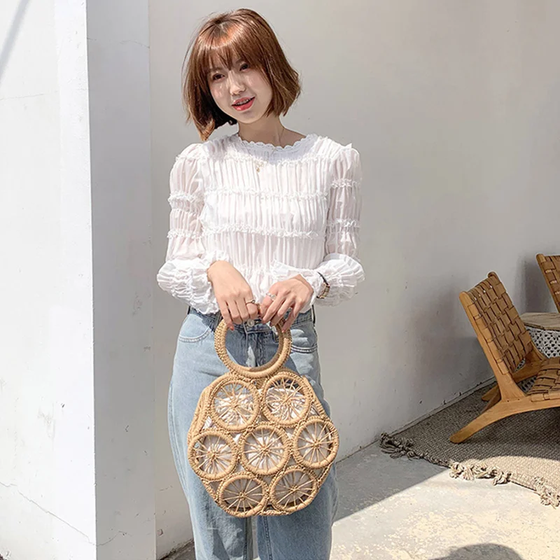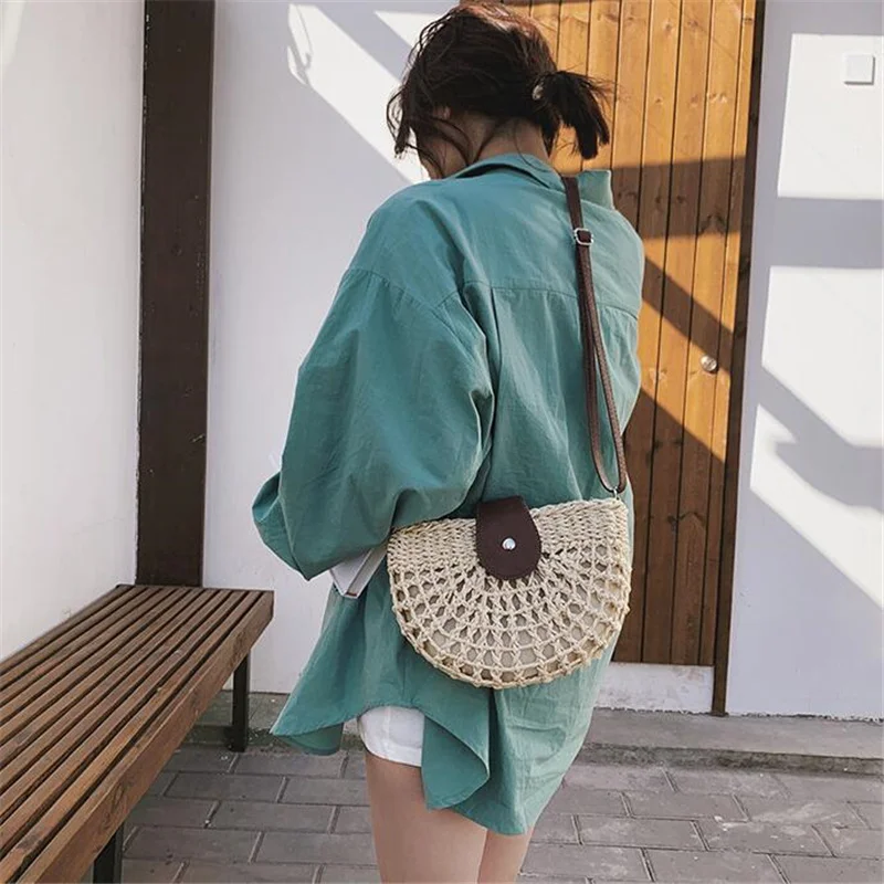 Соломенные круглые сумочки для женщин, повседневная плетеная пляжна...
