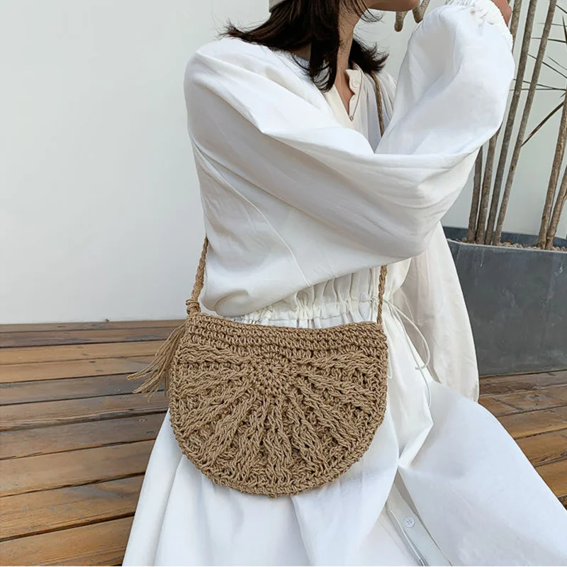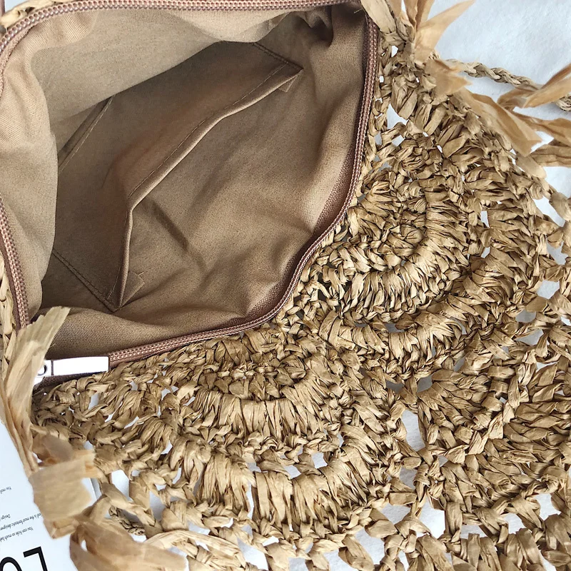 Круглая пляжная сумка из рафии, винтажная плетеная сумочка ручной р...