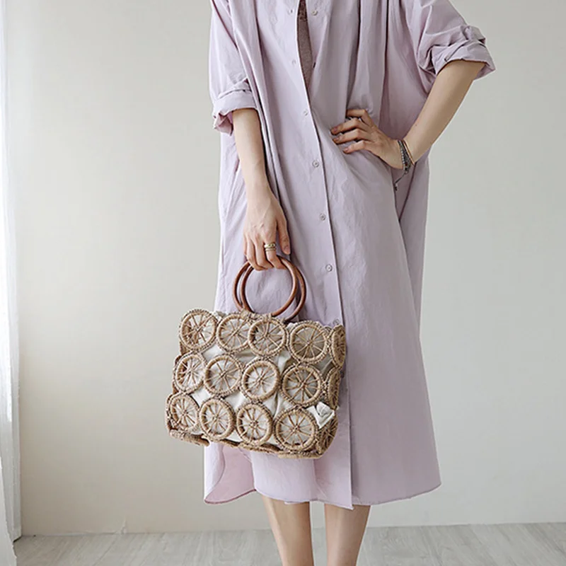 Соломенные сумки женские, ручная работа, круглые пляжные сумки из р...