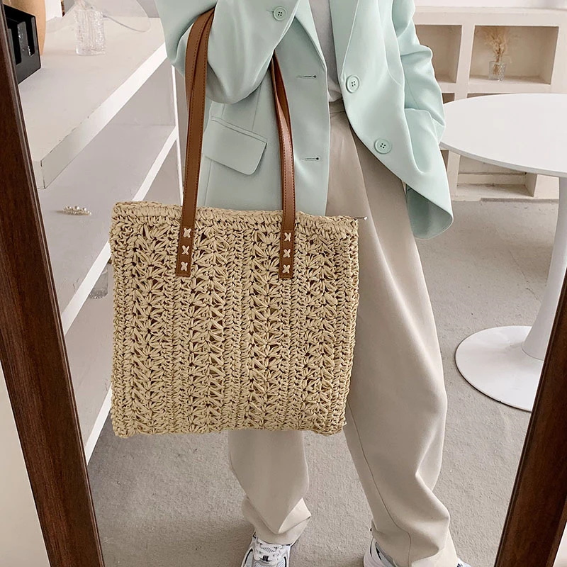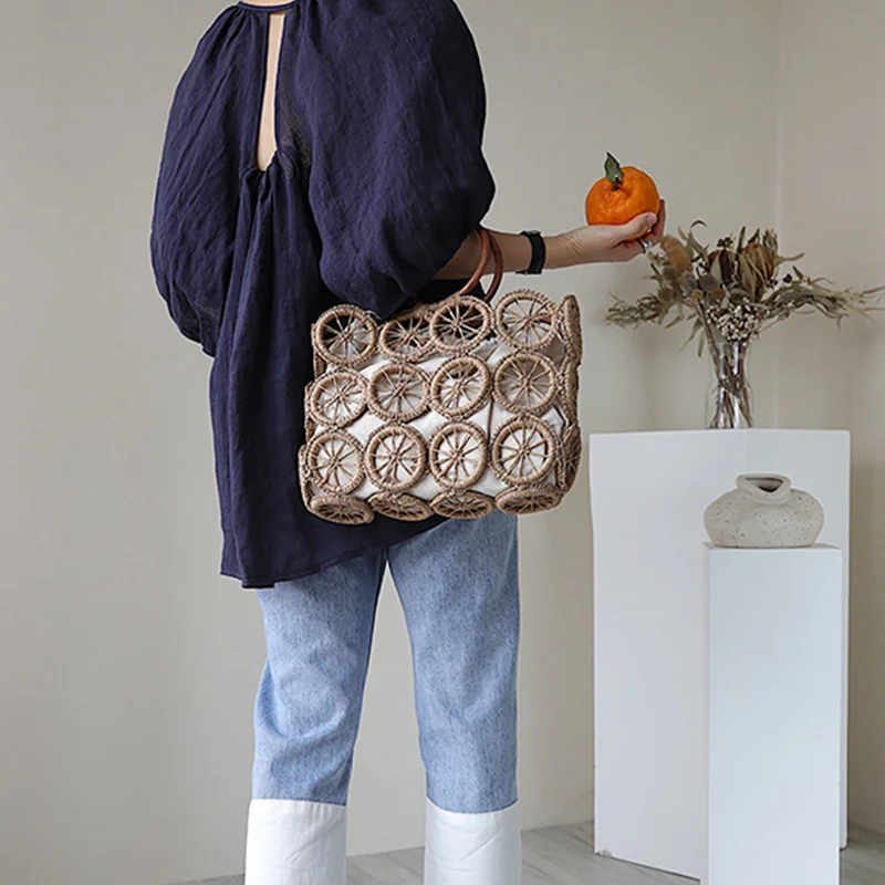 Пляжная соломенная сумка ручной работы, квадратная Ажурная сумочка ...