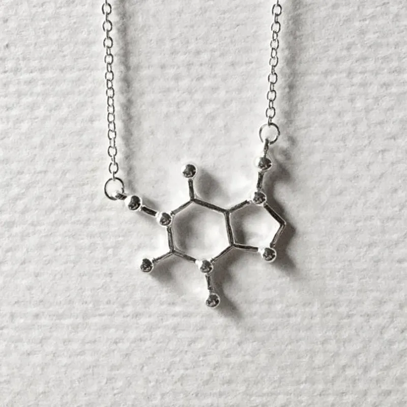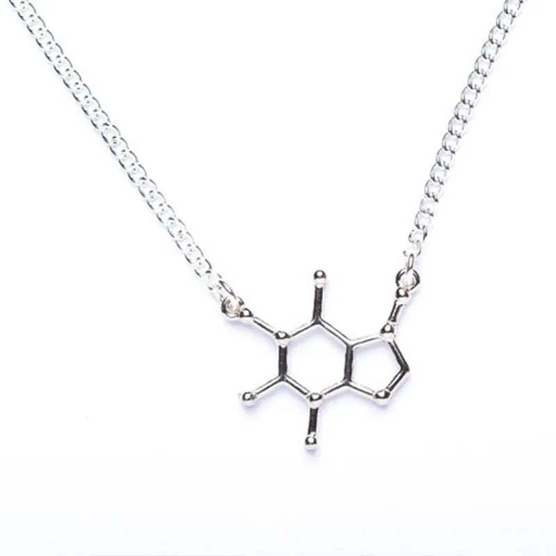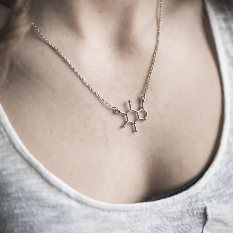 Ожерелье серебряного цвета с кулоном в виде молекулы кофеина, ожерелье-чокер для студентов-медработников, хороший биологический гормон, подарок для любимой женщины