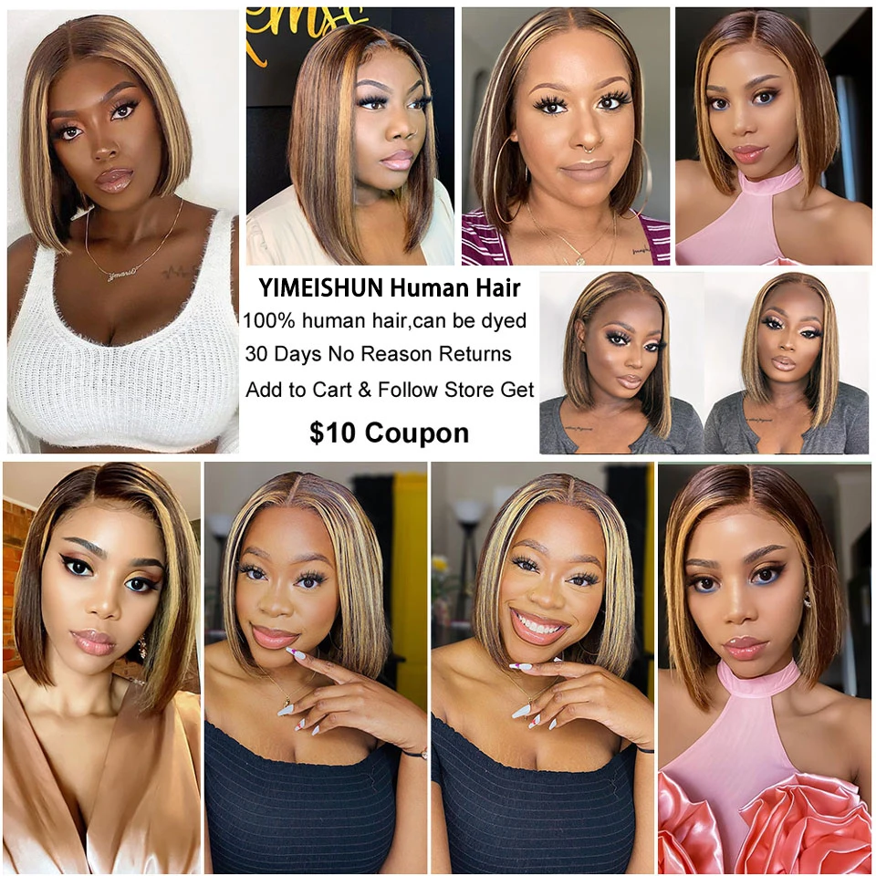 Парик хайлайтер, прямые волосы, парики боб, 13x 4, парики из челове...