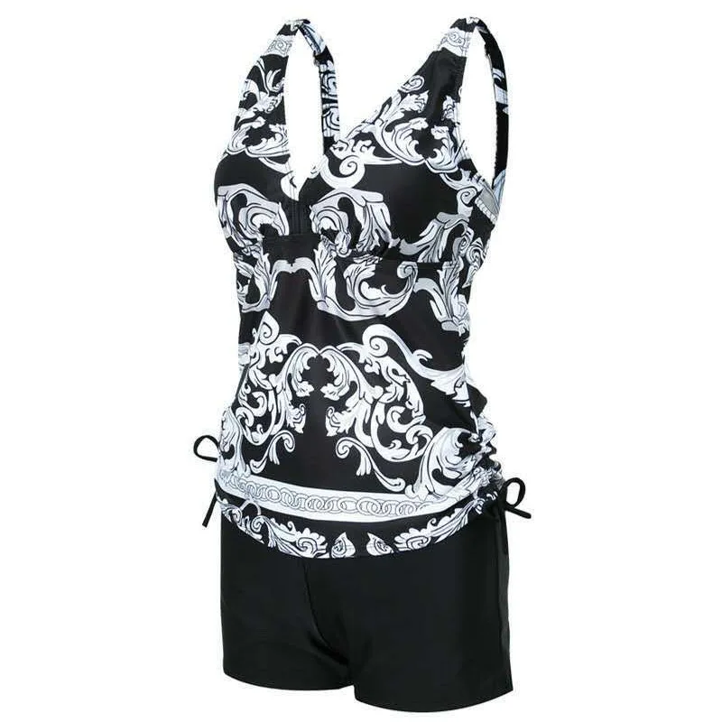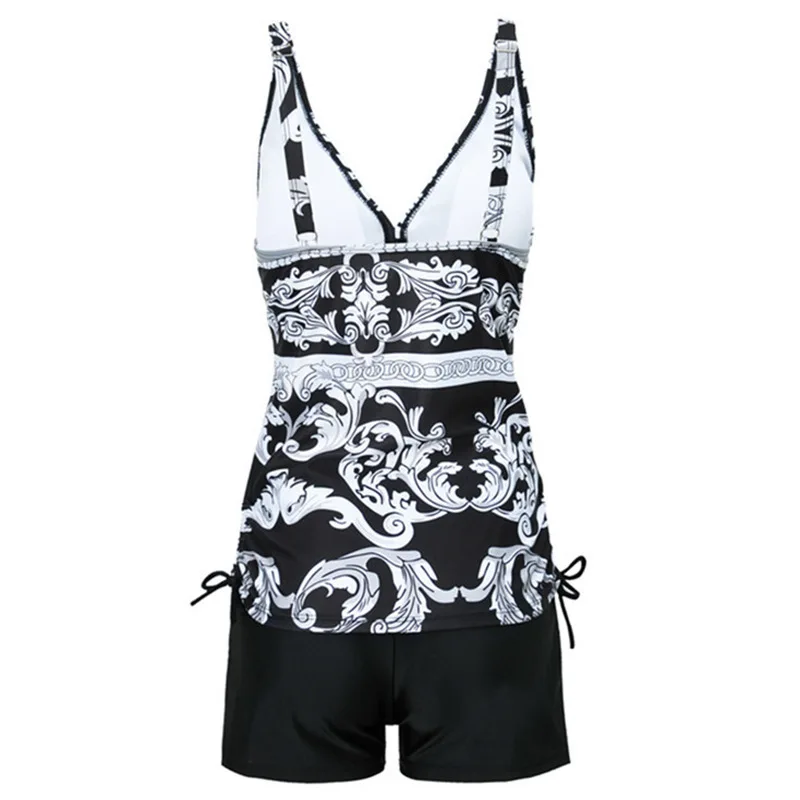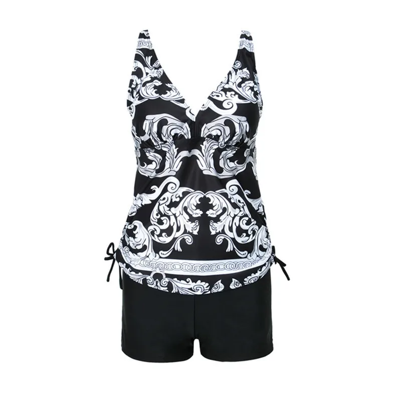 Женский купальник из двух предметов, большие размеры, танкини, купальные костюмы с шортами, комплект Танкини с V-образным вырезом, купальный костюм с черным принтом 3XL, 2021