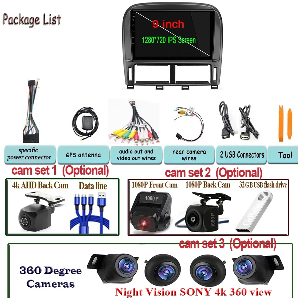 Автомобильный стерео Мультимедийный проигрыватель 360, камера для H...