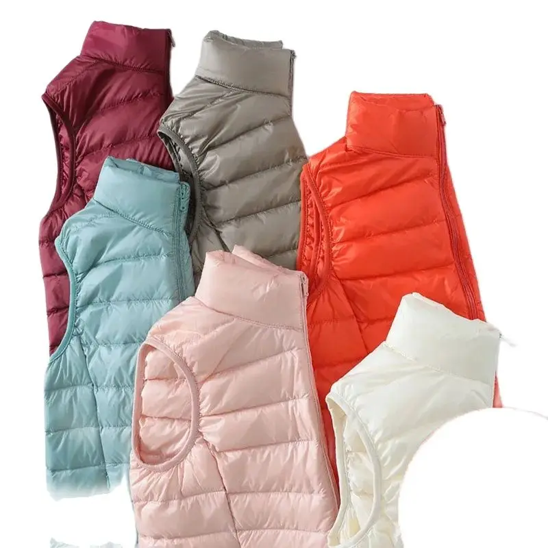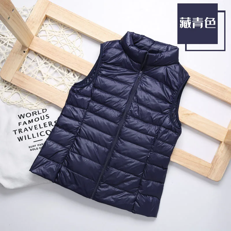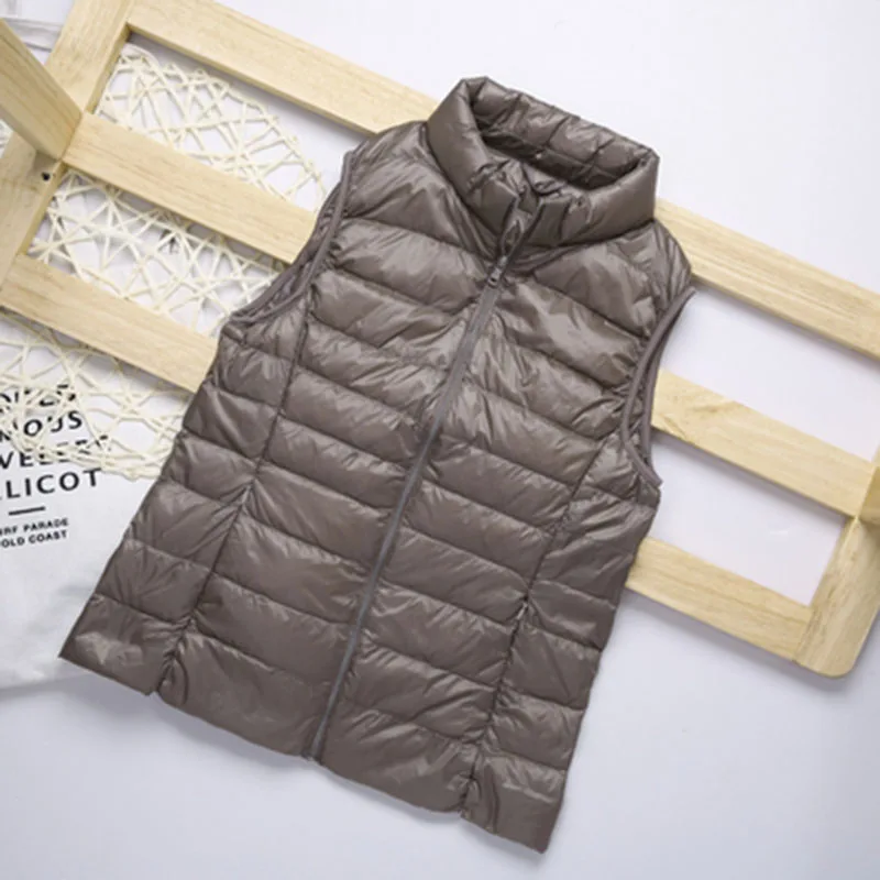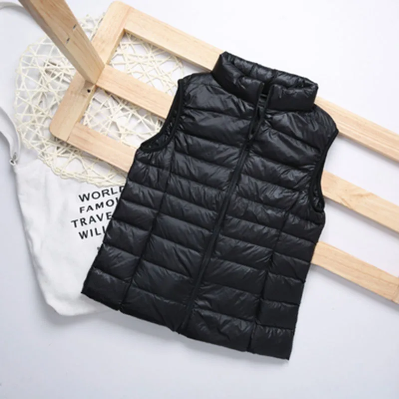 Новинка 2022 г., зимние женские блестящие пуховые куртки, жилет, короткий ультрасветильник тонкий 90% белый утиный пух, осенний пуховик, безрукавка
