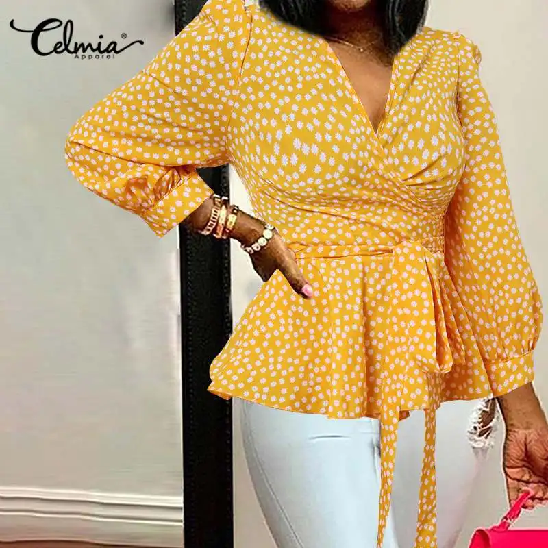Celmia женские сексуальные стильные блузки с V-образным вырезом 2022 осенние топы с цветочным принтом сексуальная элегантная офисная рубашка Женская туника