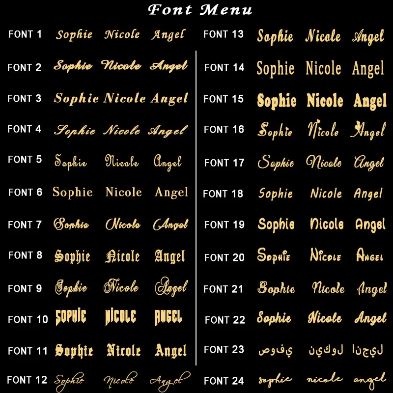 Внимание: Друг, после того, как вы разместили заказ. Пожалуйста, пришлите нам имя, которое вы хотите настроить. И выберите тип шрифта, который вам нравится. (Например: Jennifer шрифт 14).