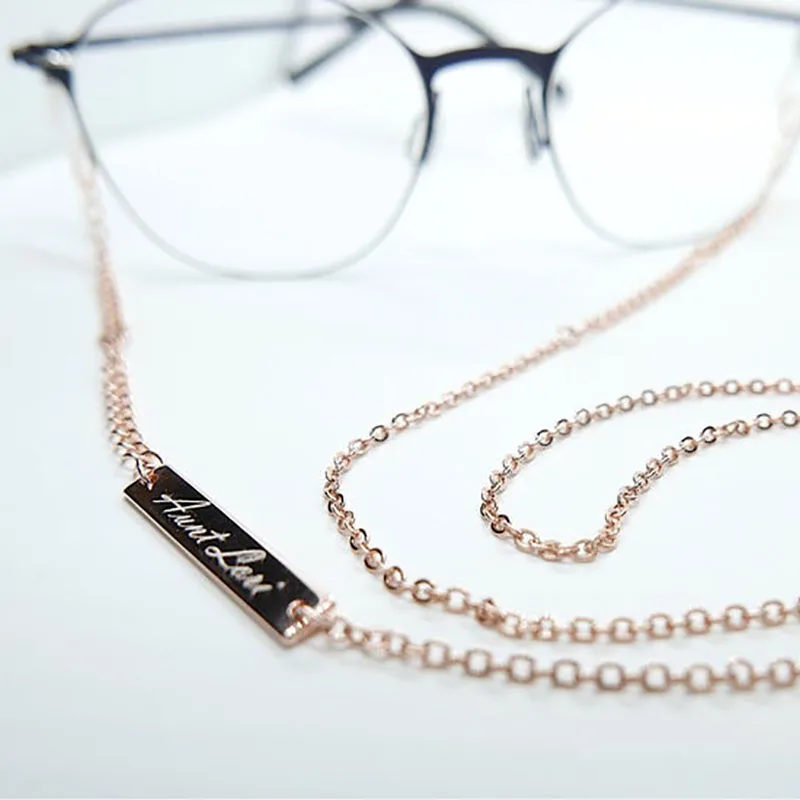 Название: цепочка из нержавеющей стали на заказ для золотых очков для женщин, индивидуальное изготовление на заказ, гравировка, надпись, ожерелье, именная табличка, ювелирные изделия