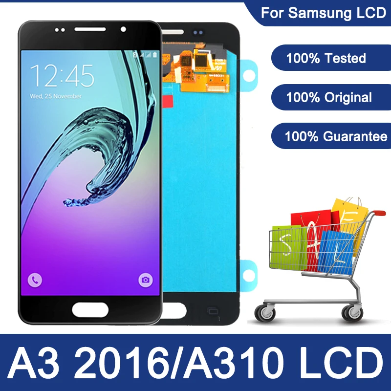 100% Оригинальный ЖК-дисплей 4,7 ''для Samsung Galaxy A3 2016 A310 A310F A3100, ЖК-дисплей с сенсорным экраном и дигитайзером в сборе, запасные части
